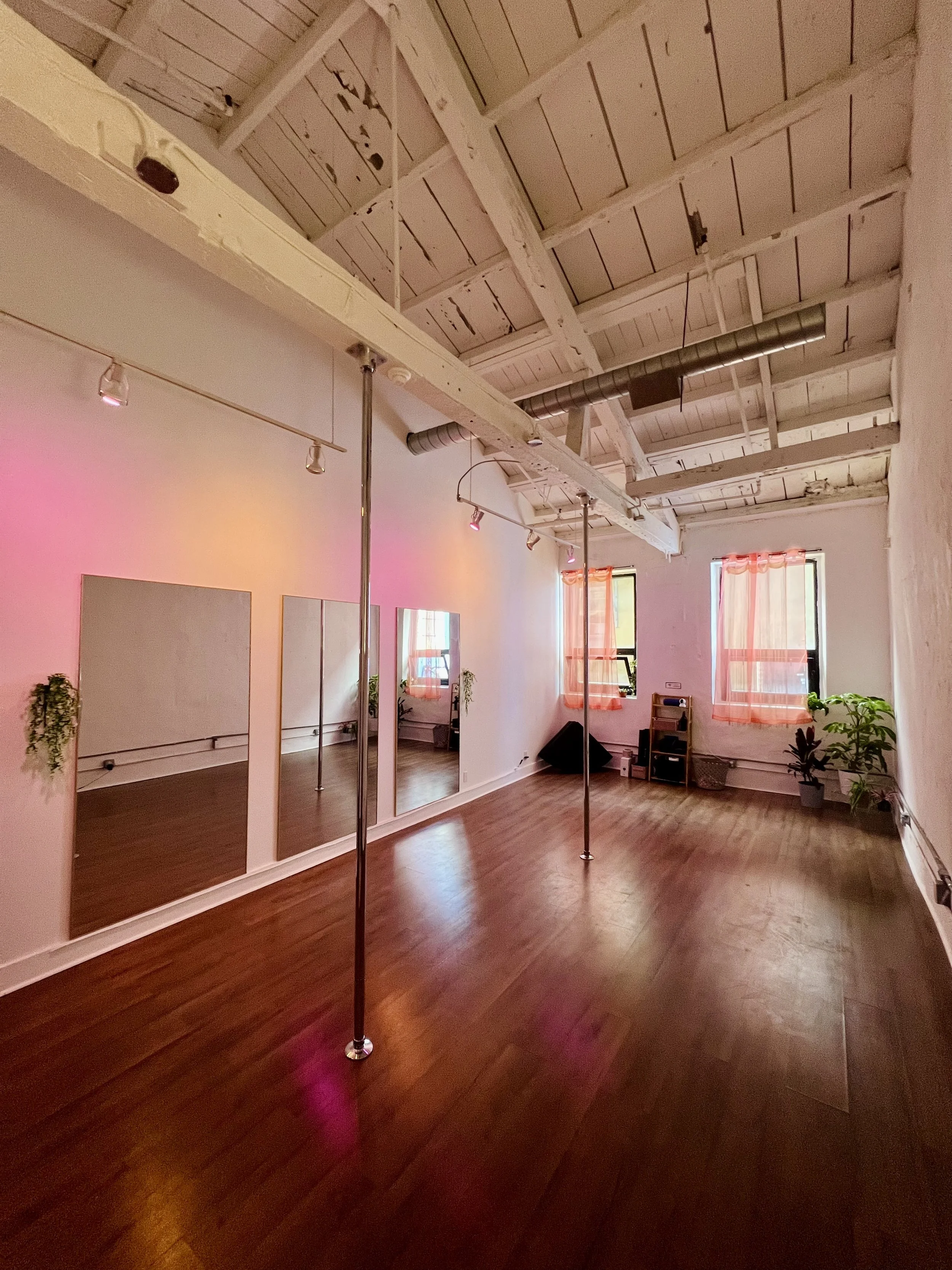 Whether you’re looking to use the space for pole dance, yoga, or another creative movement form, a variety of booking options are available to meet your needs.